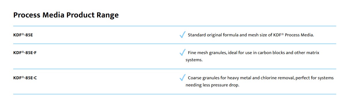 KDF®-85E is a high-purity copper-zinc process media that is offered in granule form, with coarse and fine mesh sizes. It is non-toxic, 100% recyclable and contains no chemical additives. It targets iron and hydrogen sulfide, also controlling scale and algae.